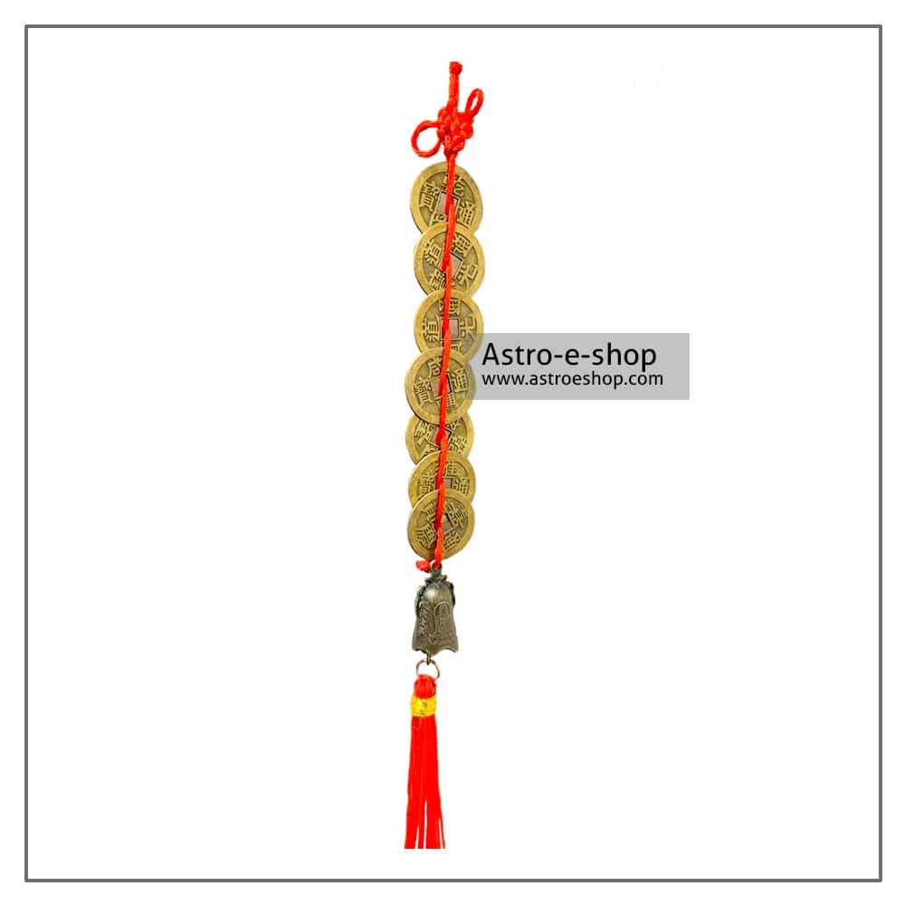 फेंग शुई विद्या के मुताबिक लाल धागों में बंधे पुराने सिक्कों (Feng Shui Coins) का बहुत महत्व है | पीतल की धातु में बने सिक्के लाल रंग के रिब्बन में गुथे हुए होते हैं | काफी समय से इन सिक्कों को आर्थिक सम्पन्नता का प्रतिक माना जाता है | यह सिक्के गोल होते हैं जिनके बीच में एक चौकोर छेद होता है इसमें एक तरफ तो चार लिपि प्रतिक होते हैं जो की सकारात्मक उर्जा से सम्बंध रखता है और दूसरी तरफ दो लिपि प्रतिक होते हैं जिसका सम्बंध नकारात्मकता से होता है | इन सिक्कों को आपस में इस तरह से गुथा जाता है की चार लिपि प्रतिक एक तरफ हों और दो लिपि प्रतिक एक तरफ |